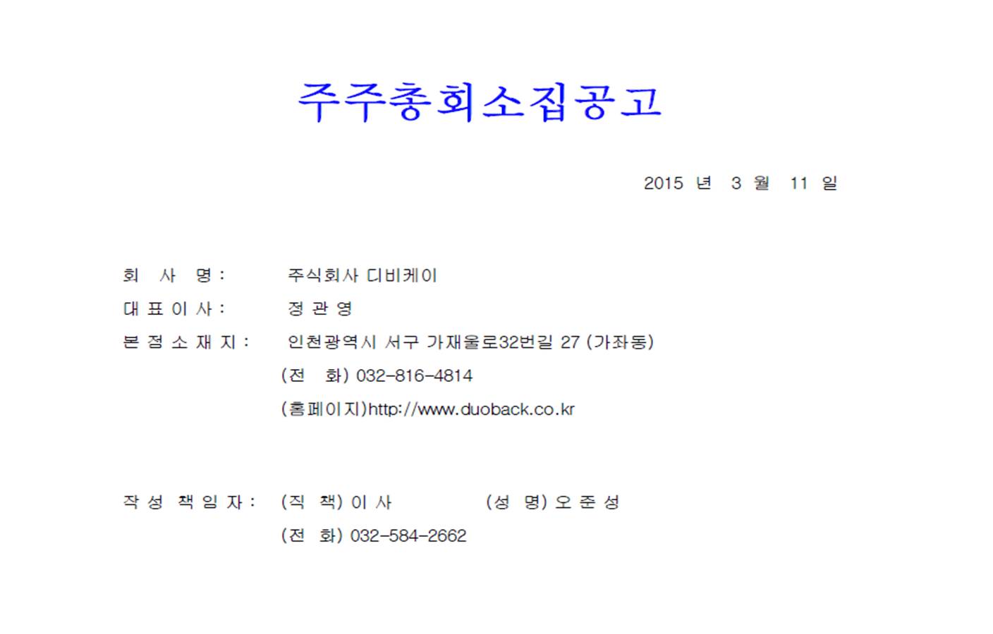 제26기 정기 주주총회 소집공고를 안내해 드립니다.