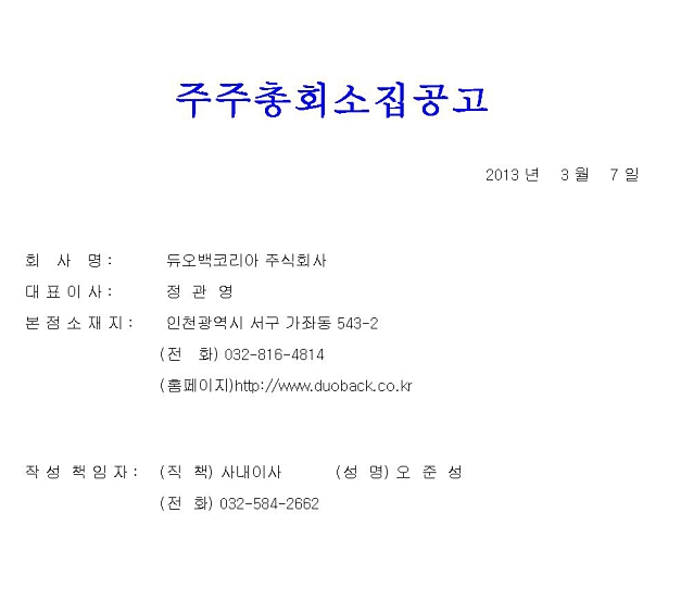 안녕하세요.. 듀오백코리아 경영지원본부 입니다.