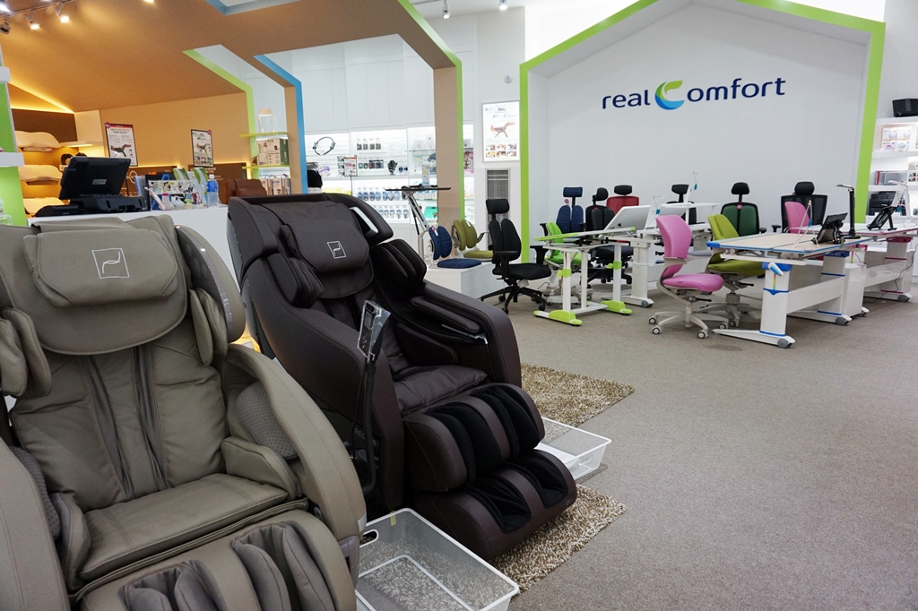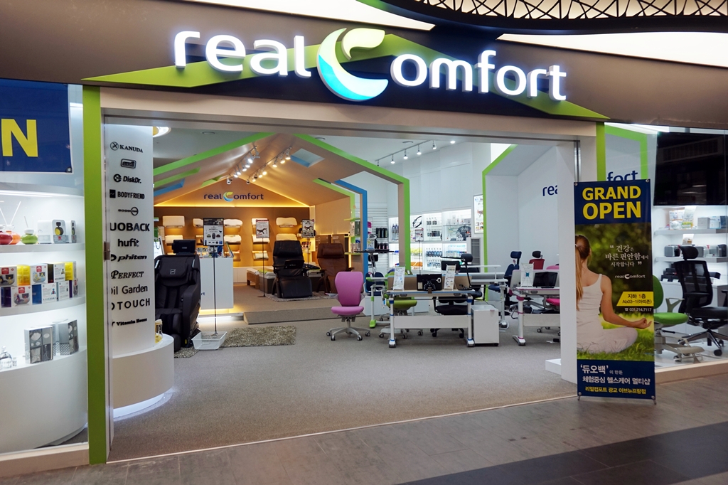 2012년 디비케이 경인지사에서 출발한 리얼컴포트 인천 구월점은 의자 뿐만 아니라 마사지기, 기능성 베개와 ‘공기 주입식 목·허리 견인기’와 같은 의료기기도 판매한다. 이광현 국내영업본부장은 “리얼컴포트 인천 구월점은 거주지역을 배후로 하여 병원과 가전제품 종합매장 밀집 지역에 위치해 헬스케어 틈새 시장 공략에 적합하다.”라고 설명했다.