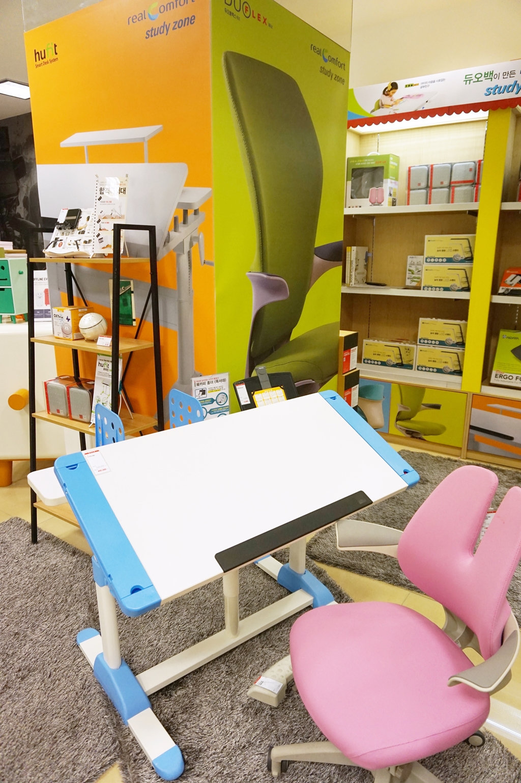디비케이가 리얼컴포트 스터디존의 상품 구성으로 교보 핫트랙스 강남점에 3월 7일 입점했다. 사용자 맞춤형 책상 ‘휴피트’, 최근 출시한 아동용 의자 ‘듀오키즈 래빗’과 ‘듀오플렉스 주니어’, 스탠드와 독서대 등의 소품을 비롯해 23종의 상품을 판매한다.