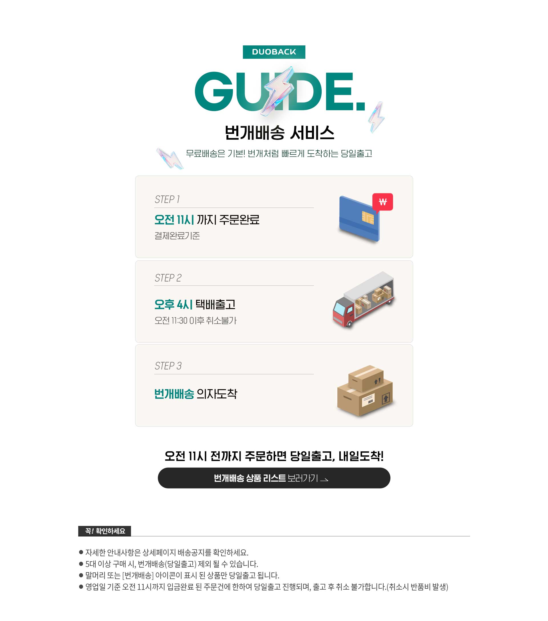 오전 11시까지 주문하면 당일출고! 번개배송!